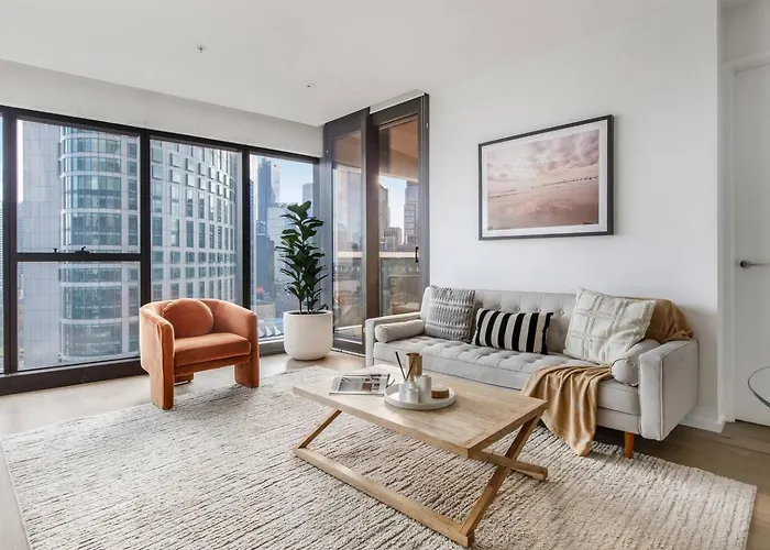 Az 'Riverside Lustre' Chic Resort-Style Escape By Crown Melbourne könnyű elérhetőséget nyújt az olyan városi nevezetességekhez, mint a nagyjából 400 méterre található az Eureka-torony. A vendégek az apartmanban átadhatják magukat a pihentető tartózkodásnak szauna és beltéri medence jóvoltából.